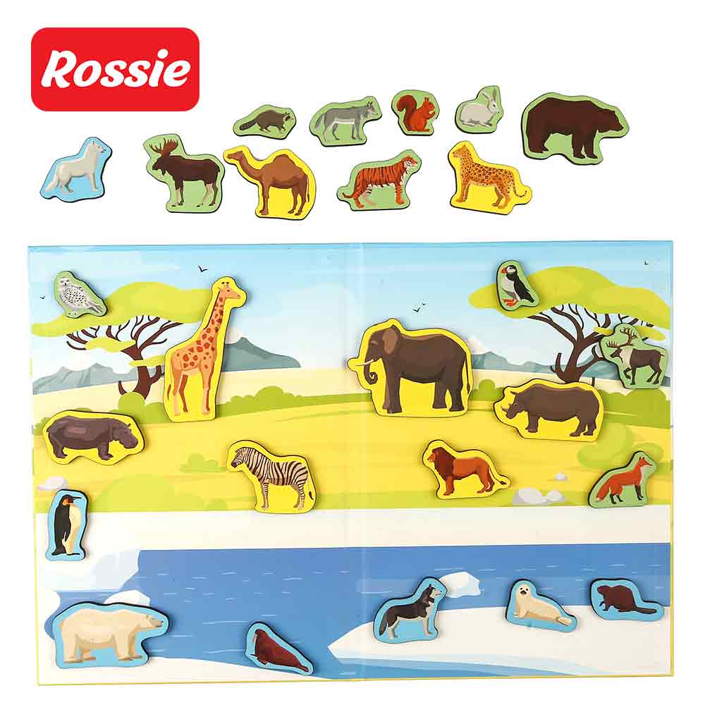 Rossie Mıknatıslı Oyun Alanı Ahşap Vahşi Yaşam Seti Kitap 3 Yaş+